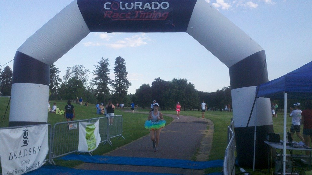 Kirk decided to keep running a bit faster and I tried to hold the pace. Stupid. I was wiped out about a mile in and basically struggled to just keep running the remaining two miles. It kind of sucked and wasn’t very fast for me by the end of the 3.1 mile course. Oh well. First race in Colorado down!