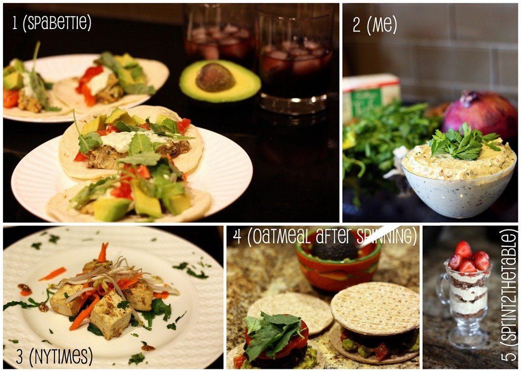 4 – Beet Burgers from Oatmeal After Spinning. For this meal, I made it Mexican-style with fresh guacamole, heirloom tomatoes, and spring greens!