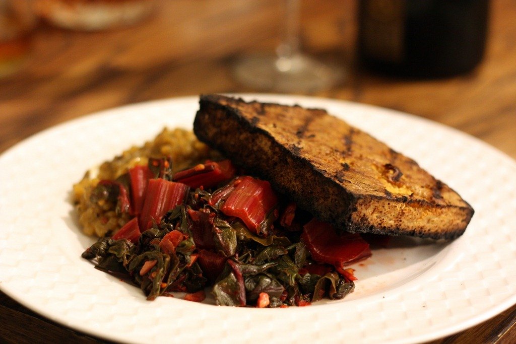 Served with the Whiskey Marinated Tofu Steak and sautéed chard, this makes a delicious meal (if I do say so myself).
