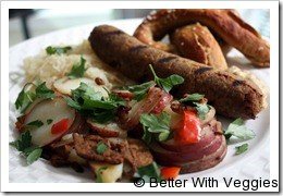 Many of the traditional Oktoberfest favorites aren’t quite vegan-friendly. At least they weren’t until I got my hands on them. 🙂 Our Oktoberfest Feast this evening was full of traditional flavors and much healthier than normal!