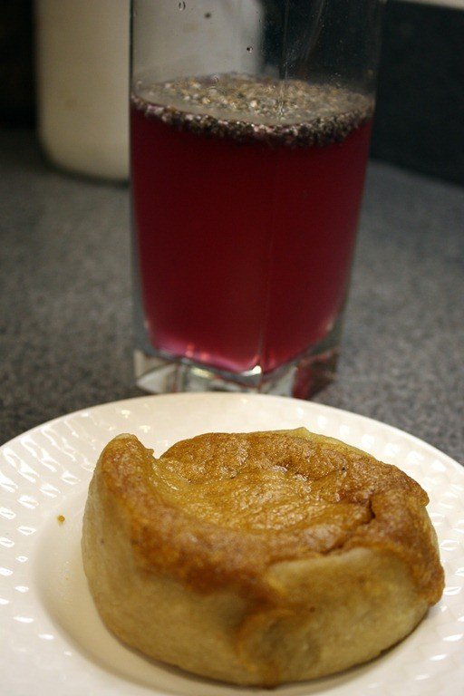 I got a little crazy one morning and decided to enjoy a cinnamon spice roll with a glass of Kombucha – spiked with a tablespoon of chia seeds. It was an interesting flavor, not sure if it’s something I would add to my Kombucha very often. 🙂