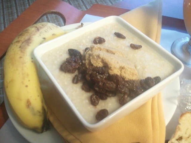 Even with limited choices, I was pretty happy with my breakfast of oatmeal (with brown sugar, raisins, and banana), english muffin with peanut butter, and fresh fruit. WAY too much food, but a little of everything was perfect.