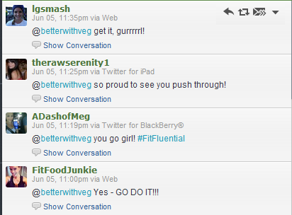 It’s Wednesday – yipee!! This week is going by so fast and I’m loving it! It’s been so busy with starting the new job, house-hunting, and workouts that I’ve hardly had time to sit down. In fact, I started my workout last night after 9PM. It’s nights like this that remind me how awesome you guys are – immediately tweeting out support when I asked for it. 🙂