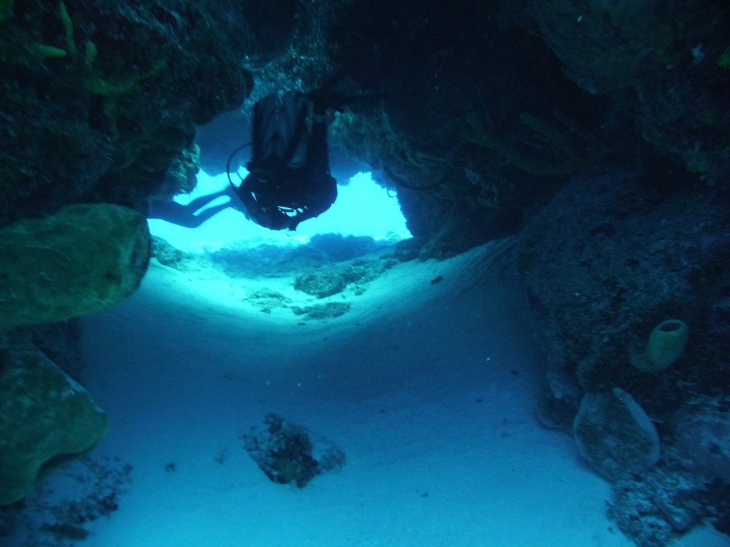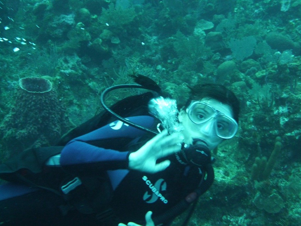 The photo above is me on the left, divemaster on the right. When you exit that swimthrough, you look down a huge wall covered in underwater life and straight ahead is deep blue ocean. It was breathtaking. I immediately thought “this is why I love diving in Cozumel”. Roatan was great, but Cozumel is gorgeous. Maybe there’s a better time of year to dive Roatan?