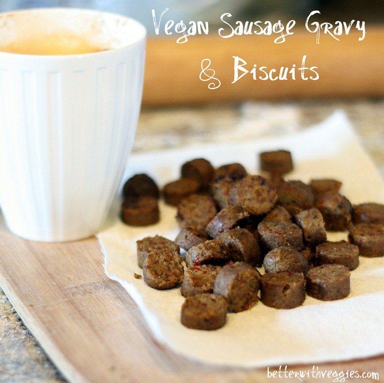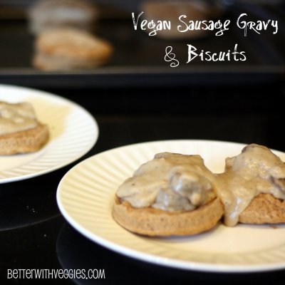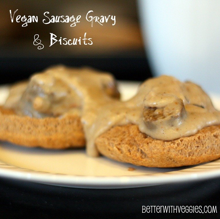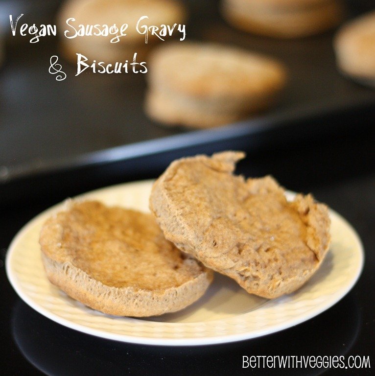 I’ve been having fun making “fancy” breakfast at least once on the weekend recently. Sometimes fancy means a loaded tofu scramble, but after the race last weekend, I decided sausage gravy & biscuits sounded really good.