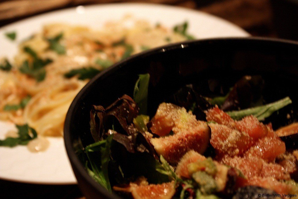 Paired with a fresh green salad of arugula, figs, homegrown tomatoes, vegan parmesan, and last night’s Jalapeno Ginger Dressing (I promise that recipe soon!).