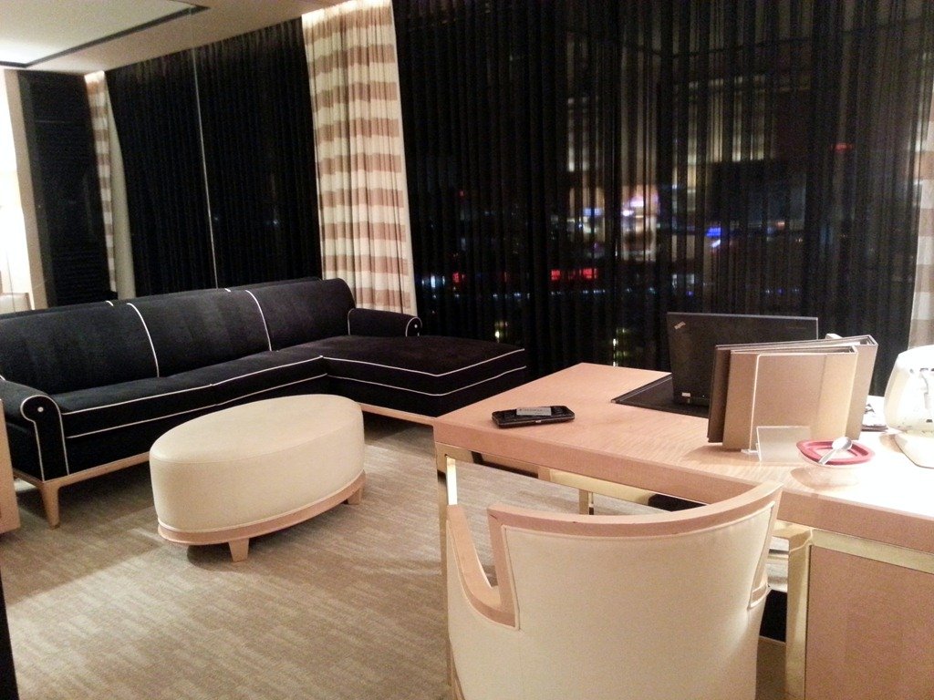 We stayed at the Wynn Encore and the rooms were fantastic. Plenty of room to spread out in the three living spaces – large bathroom, bedroom, and separate office/living area.