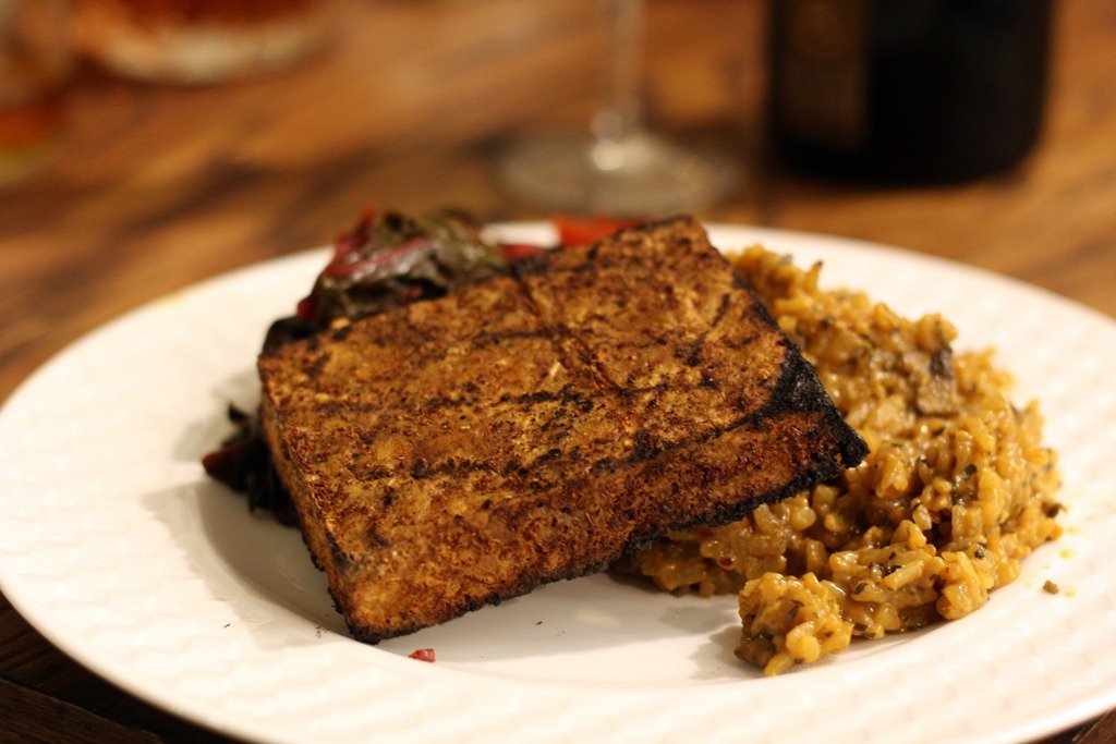 I love this tofu steak served over a bed of risotto, but it would also go nicely with rice or a bed of greens.