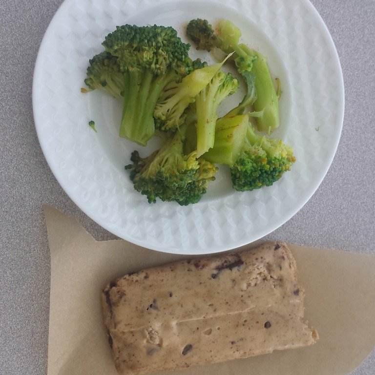 Meal 4: Chocolate Chip Cookie Dough Quest Bar and Broccoli